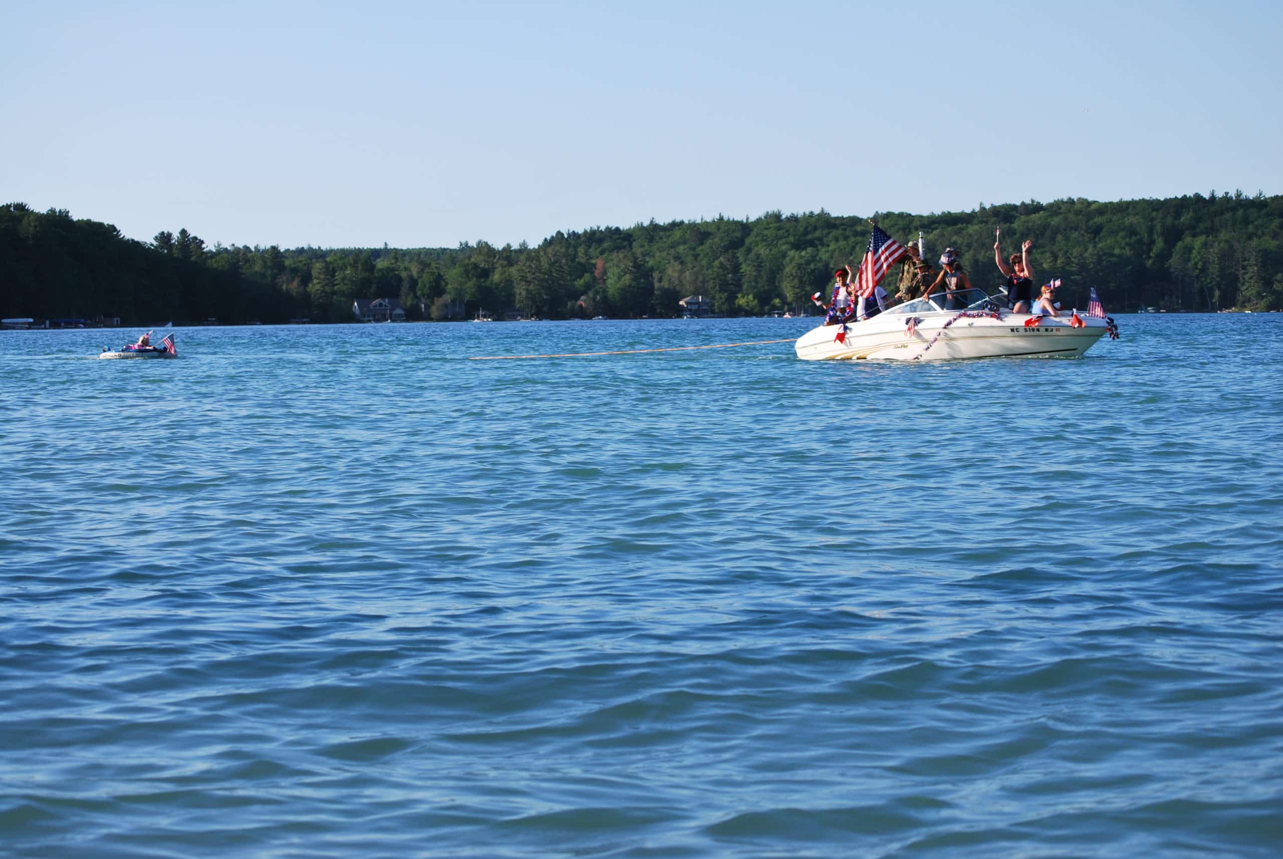 However, we felt that the tribute to the military AND the towing of a decorated little tuber, was something special and appropriate. Click on Comments just under the title on the date line to read more from the owners of the boat.